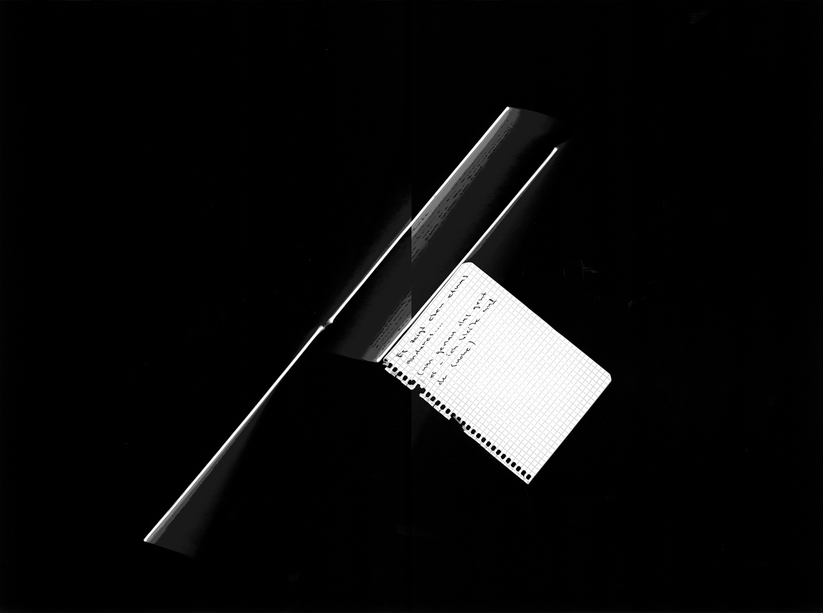 In der Unklarheit öffnet sich ein Raum der Möglichkeiten. Ich glaube fest daran, dass in diesem dazwischen diesem weder - noch, am Ende der Sprache, eine Form von Wahrheit und grosser Schönheit liegt. Alle diese Überlegungen haben dazu geführt, dass ich eine durchsichtige Entwicklerdose gebaut habe. Der beobachtete Film - also die Abzüge davon - hast du in der Ausstellung mit Claudia gesehen - die «Vorstudie zum Doppelspaltexperiment».